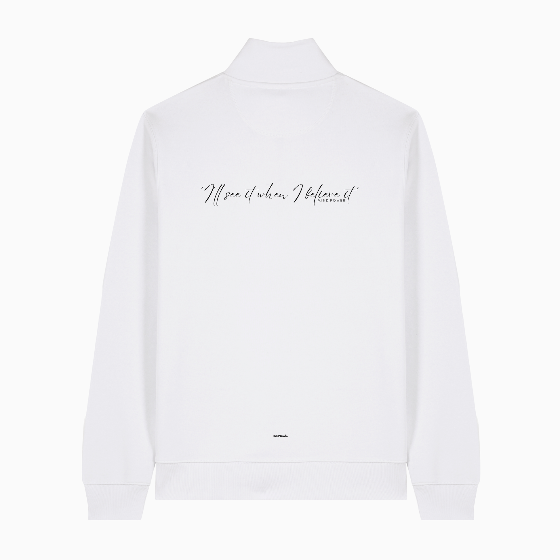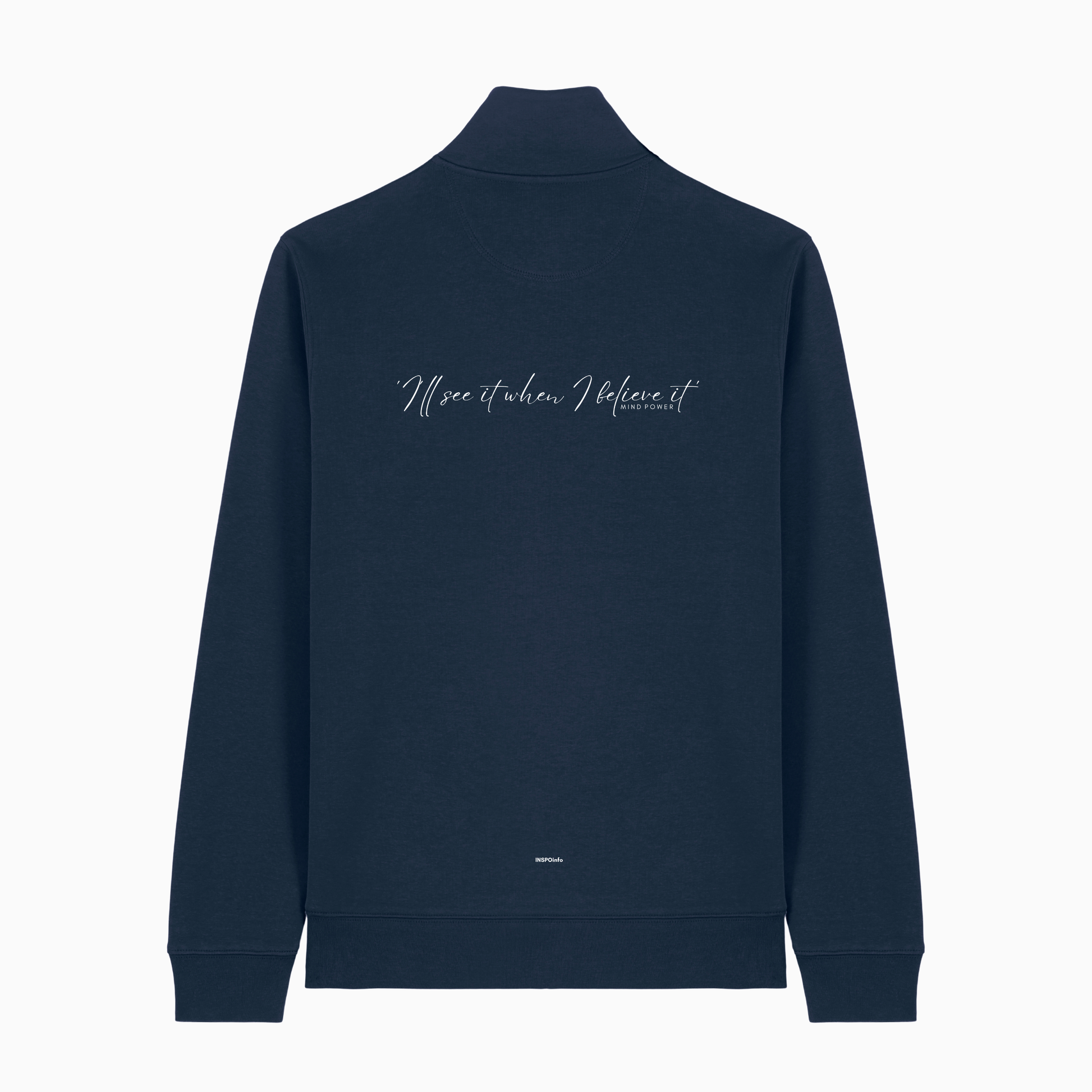 I'll See it When I Believe it High Neck Quarter Zip Sweater (Design on the Back)