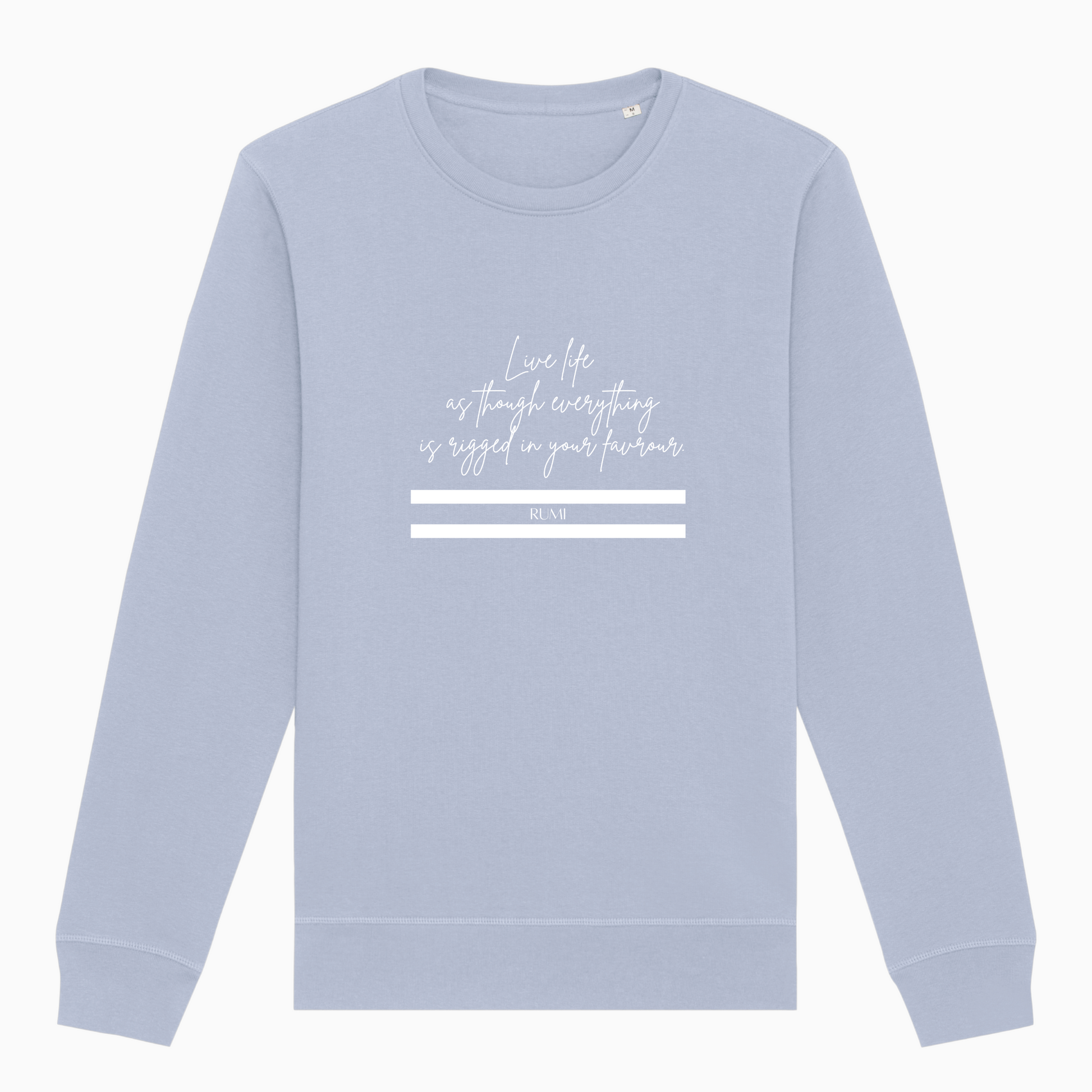 Carry a timeless reminder that the universe is on your side. This long sleeve organic T-shirt features the empowering words of Rumi: