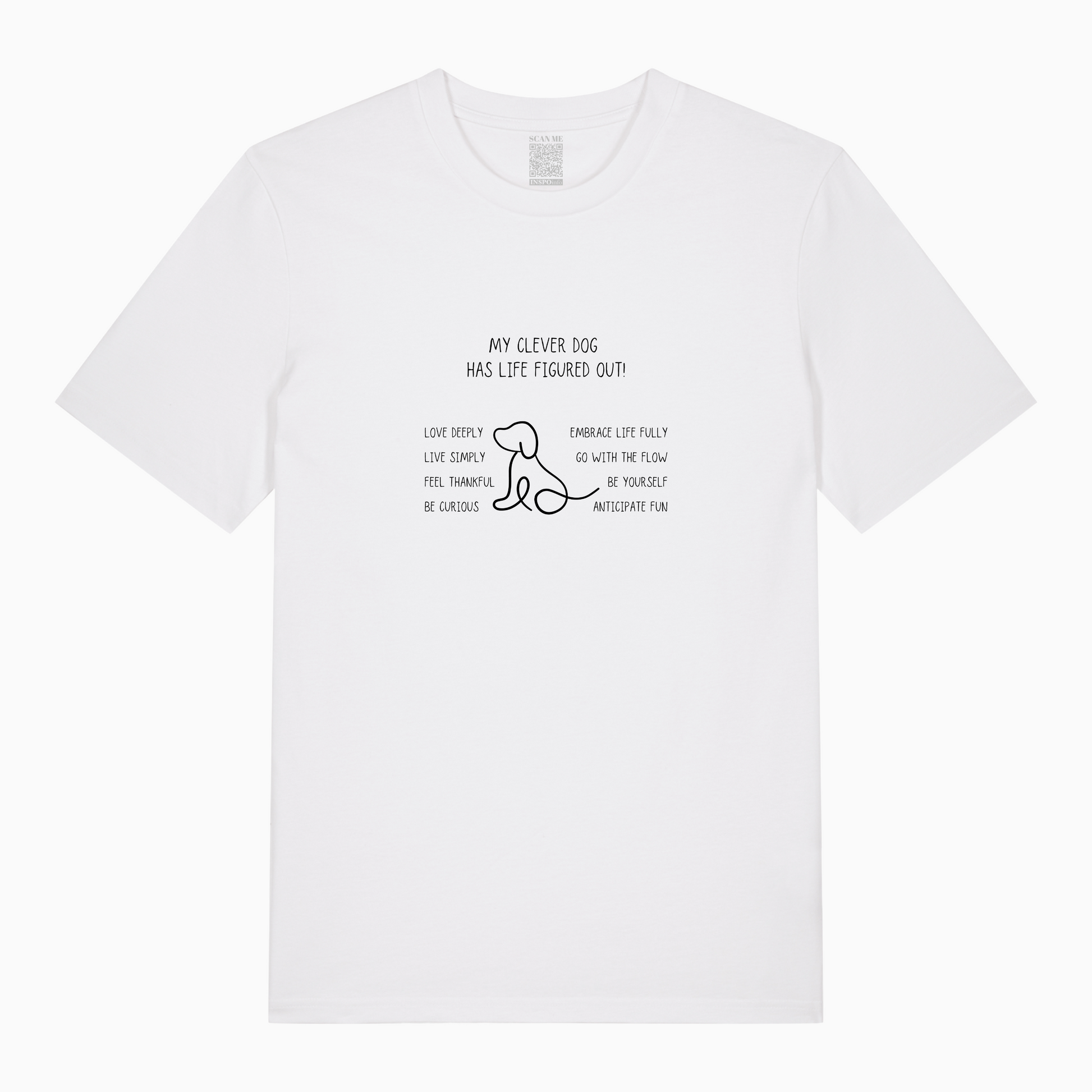 Sometimes, the wisest life lessons come on four legs. Our “My Clever Dog Has Life Figured Out” organic t-shirt is a tribute to the simple brilliance of our furry best friends—and a reminder to live with more heart, ease, and joy.