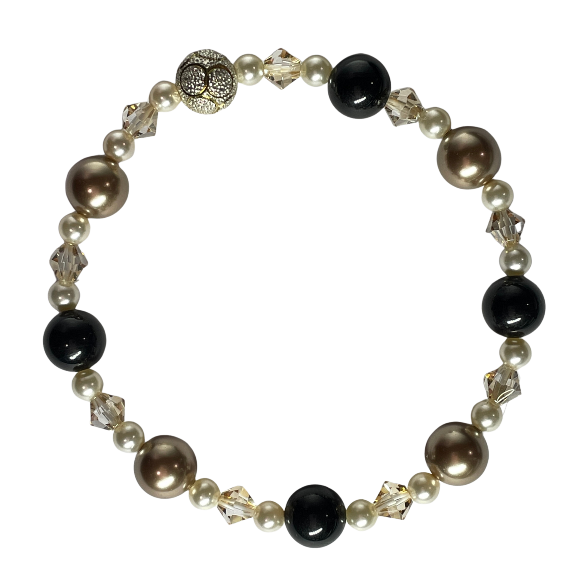 Swarovski Crystal Bracelet | Bronze Pearls & Black Beads (AU)